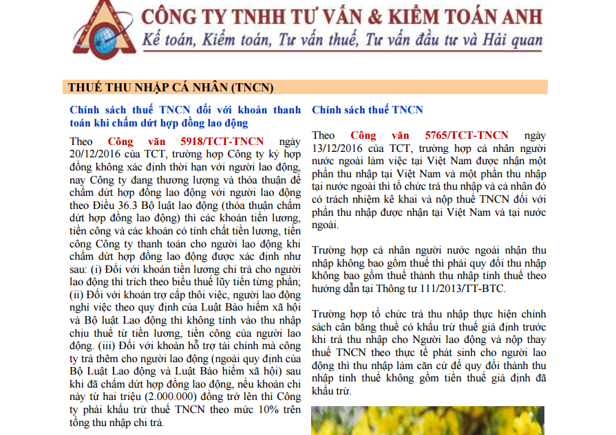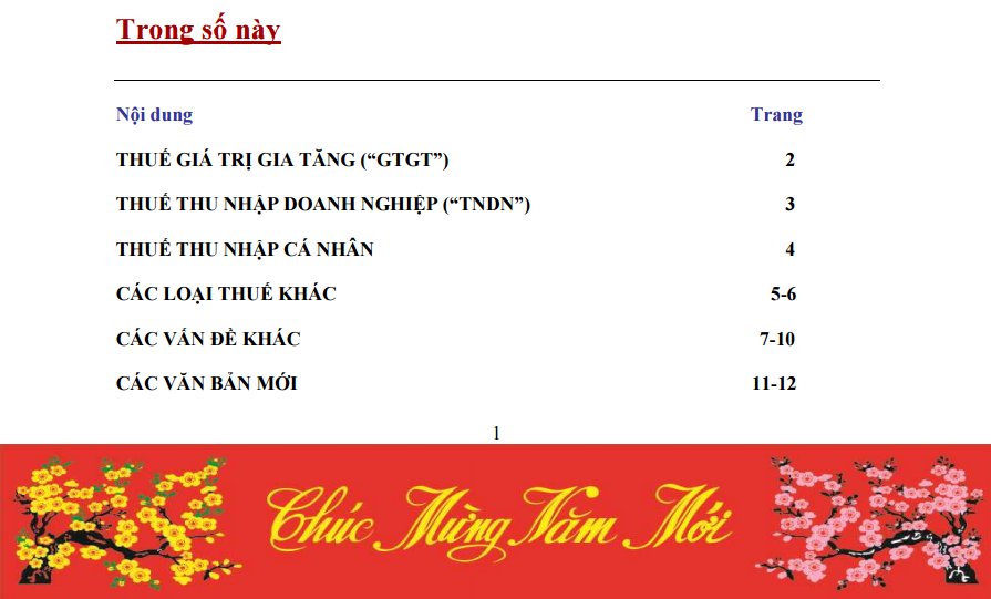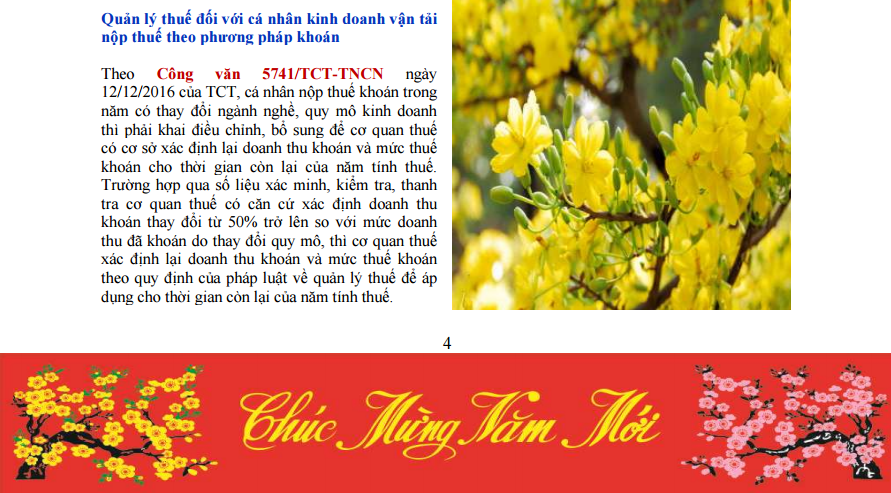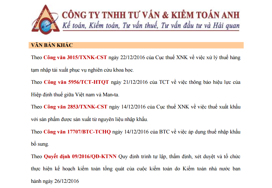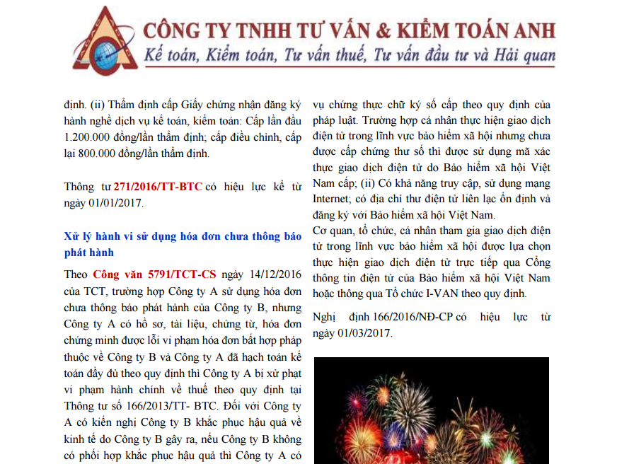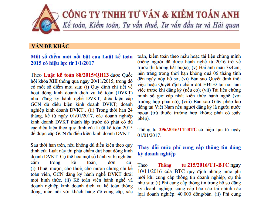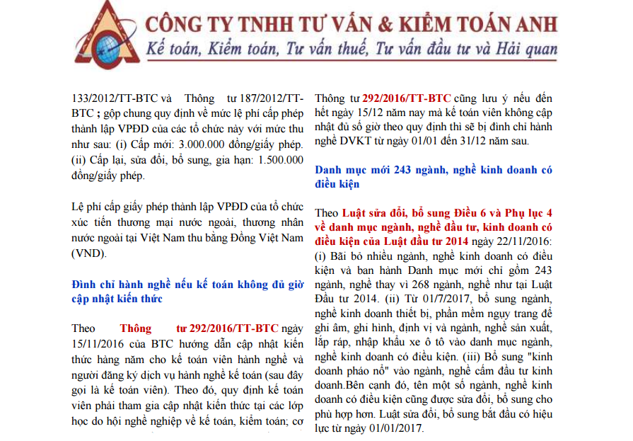 Bản tin đầu tư tài chính và thuế kỳ 1 - 1 -2017