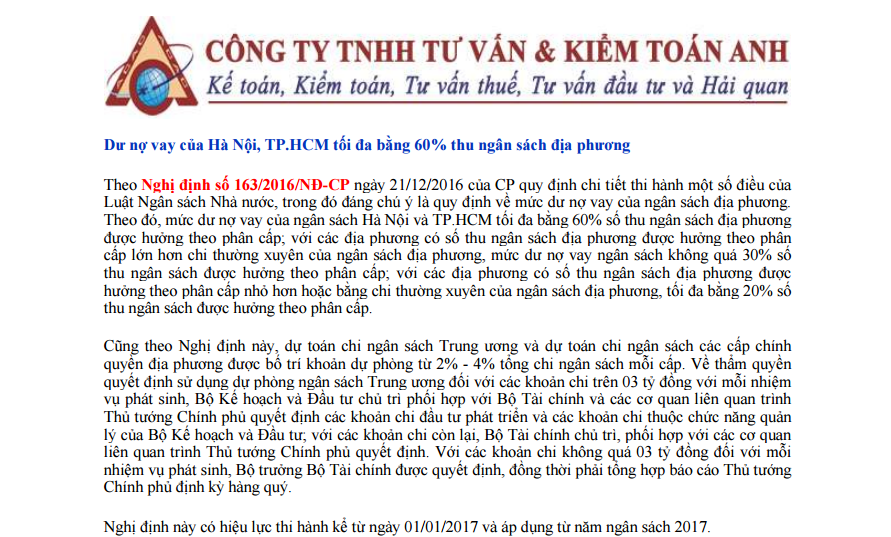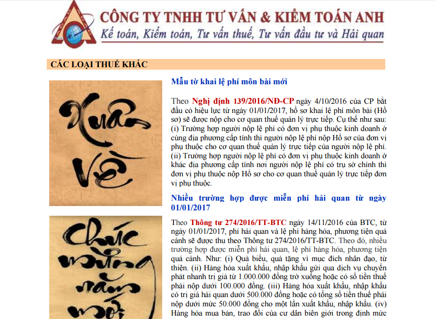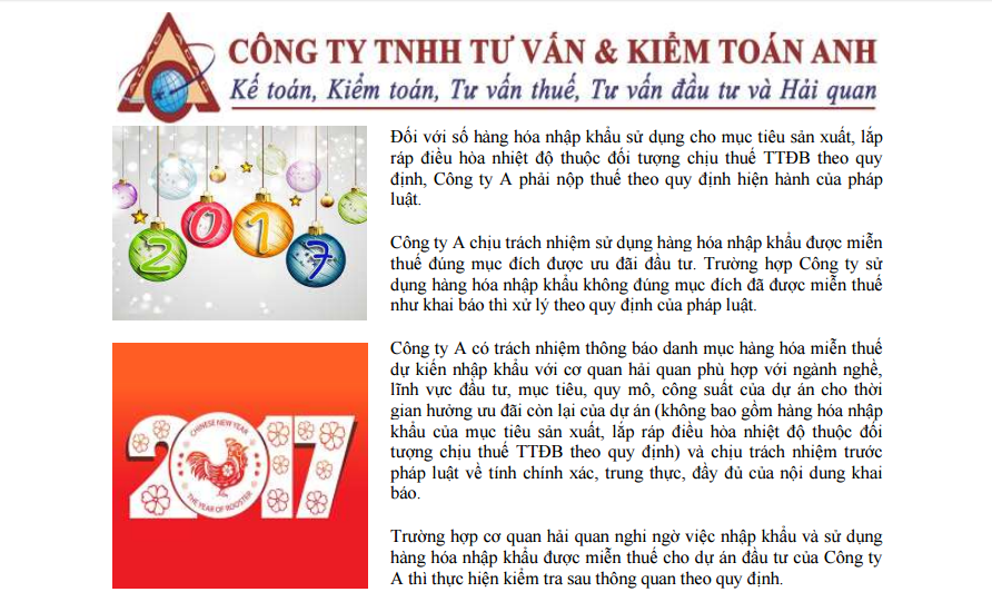 ACAC xin gửi tới bạn đọc bản tinh đầu tư tài chính và thuế kỳ 01/01/2017