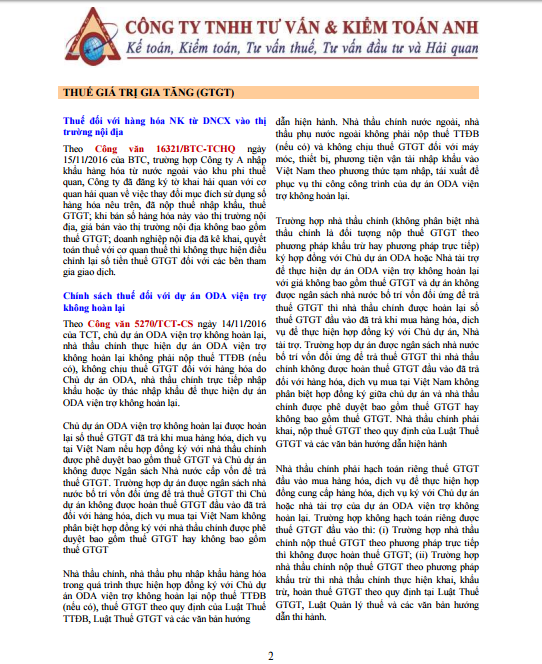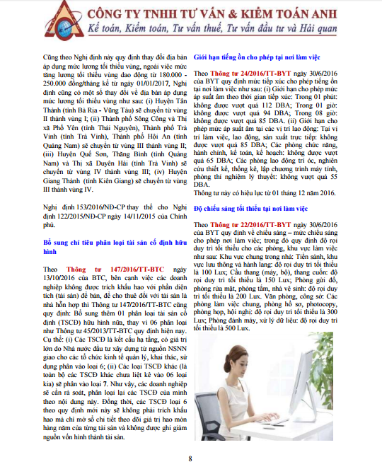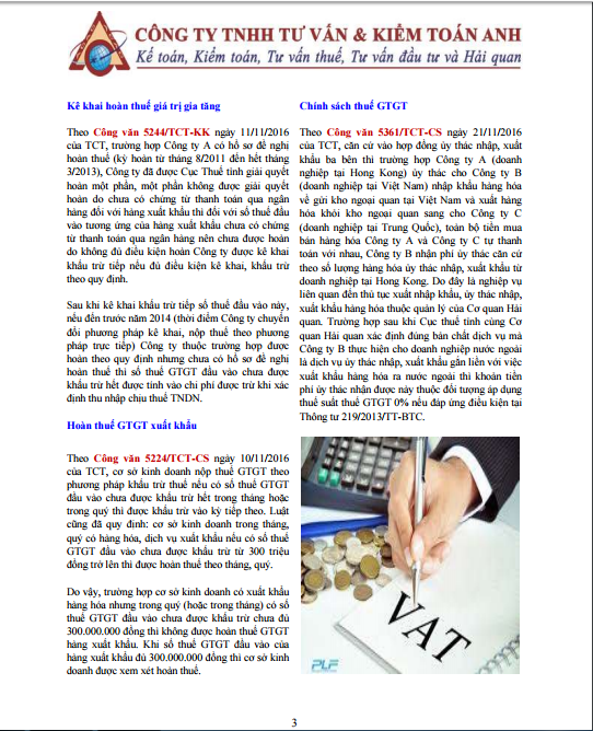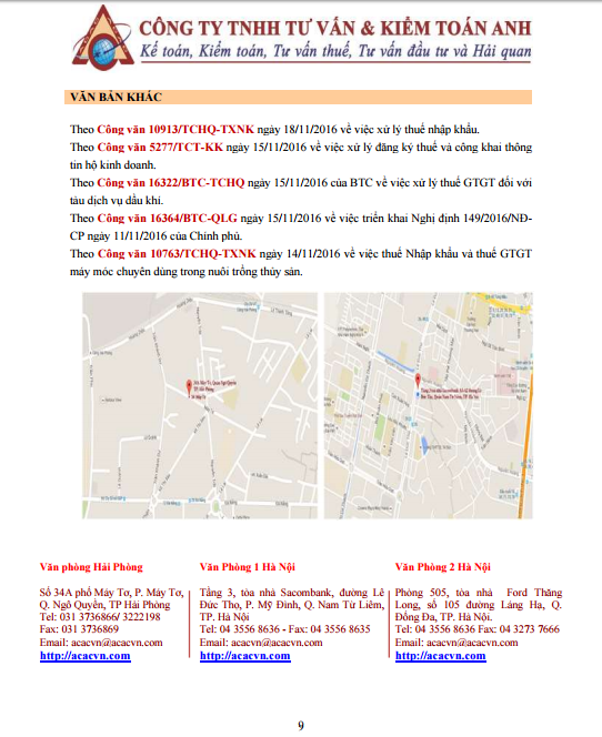 ACAC xin được gửi tới bạn đọc bản tin đầu tư tài chính và thuế kỳ 30-11-2016