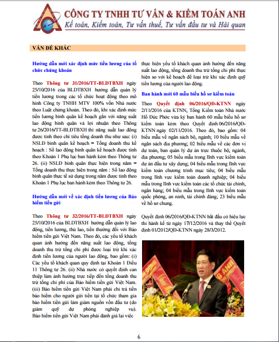 Bản tin đầu tư tài chính và thuế kỳ 30-11-2016