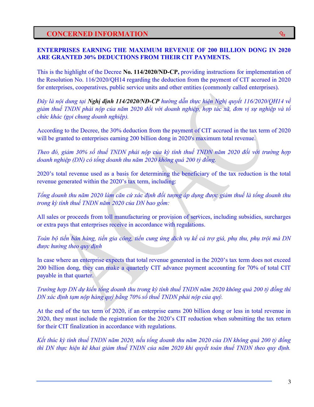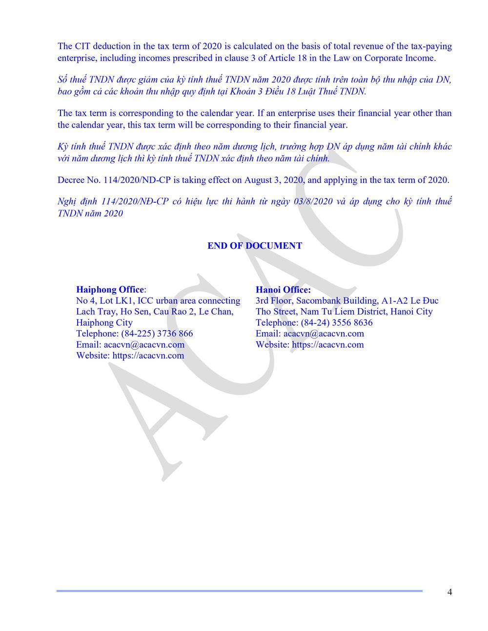 Đây là nội dung tại Nghị định 114/2020/NĐ-CP hướng dẫn thực hiện Nghị quyết 116/2020/QH14 về giảm thuế TNDN phải nộp của năm 2020 đối với doanh nghiệp, hợp tác xã, đơn vị sự nghiệp và tổ chức khác (gọi chung doanh nghiệp).