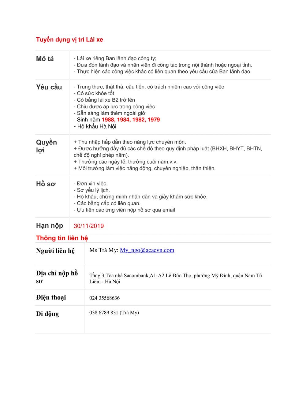 TUYỂN DỤNG NHÂN VIÊN LÁI XE CHO LÃNH ĐẠO GẤP