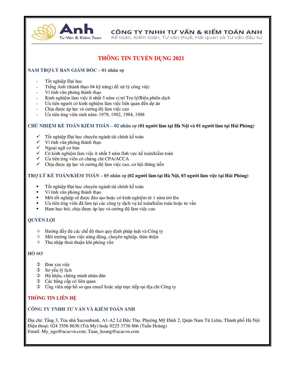index GetDataForPageInfoThe request was aborted: Could not create SSL/TLS secure channel. Tuyển dụng, Công ty TNHH Tư vấn và Kiểm toán Anh