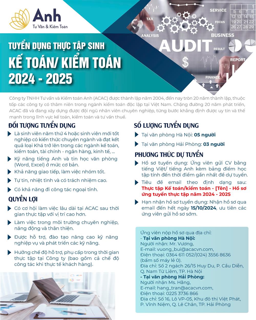 THÔNG BÁO TUYỂN DỤNG NHÂN SỰ THỰC TẬP MÙA 2024-2025