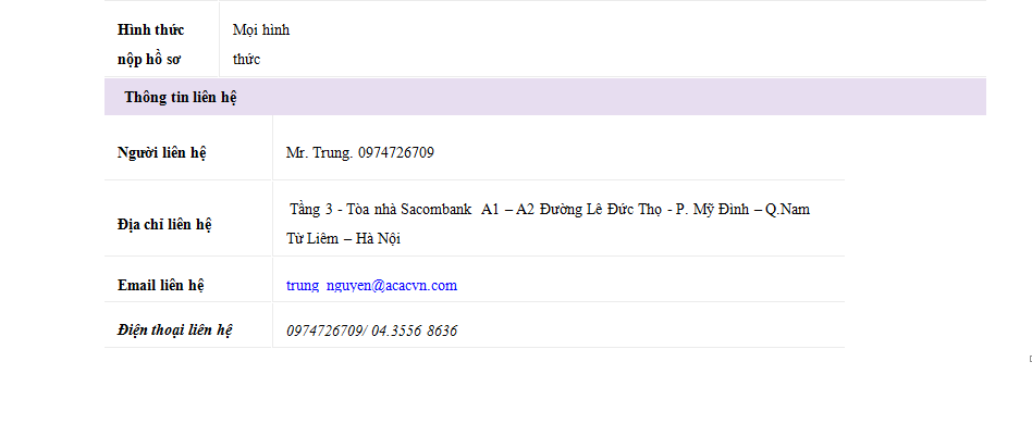 Điện thoại: (84-24) 3556 8636  hoặc điện thoại tiếp nhận thông tin 0977 730 088 Mr Tuấn Hoàng